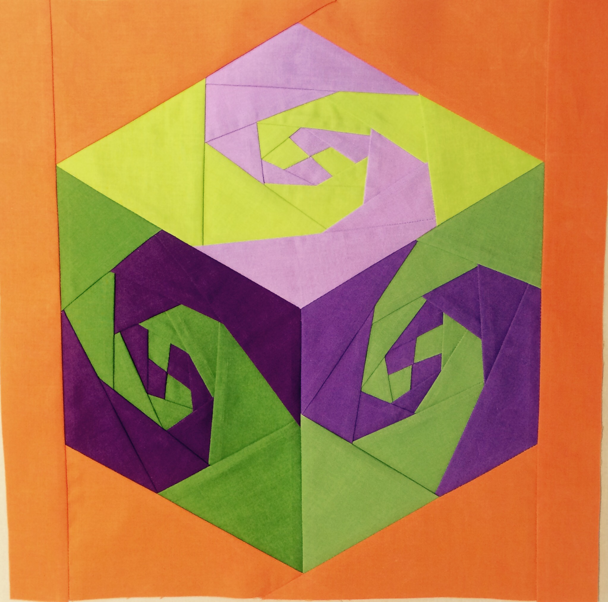 Second month of twelve. The Traditional Block this month is Snail’s Trail (below left). My modern version is below right